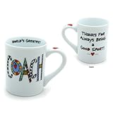 Introducing CUPPA DOODLES, a brand new collection of witty and whimsical mugs by designer Lorrie Veasey. Each mug features a reproduction of a hand drawn illustrated font- a doodle- by this artist whose work has long been associated with presenting text and sentiment in fresh and funky ways. Bold vivid pops of color combine with a mix of patterns to create items that appeal to a wide range of personalities and ages. This mug reads "World's Greatest" on the inner lip, "Coach" on the front, and "Thanks For Always Being a Good Sport." on the back. We don't play games when it comes to gifts for the coach. Made to be used and enjoyed on a daily basis-these 16-ounce. high quality stoneware mugs are dishwasher and microwave safe. From Our Name is Mud, the company that believes that stuff just tastes better when you drink it in a funny mug.