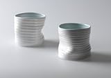 The Quake mugs are made of real bone china, with its characteristic whiteness and transparency that becomes clear when held against the light. The inside of the mugs are covered with thin transparent glaces by hand, a technique that creates sheer shades in the surface. Artistic craftsmanship combined with the finest materials, together forming a high quality utility.